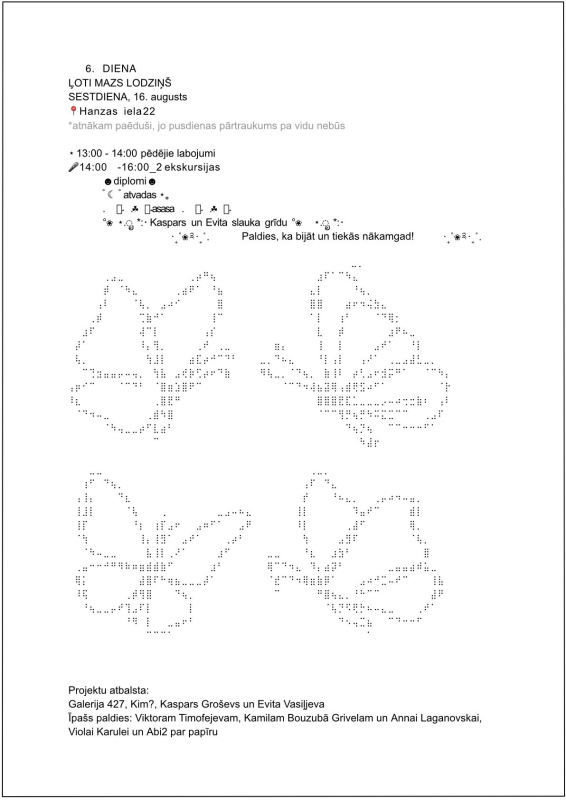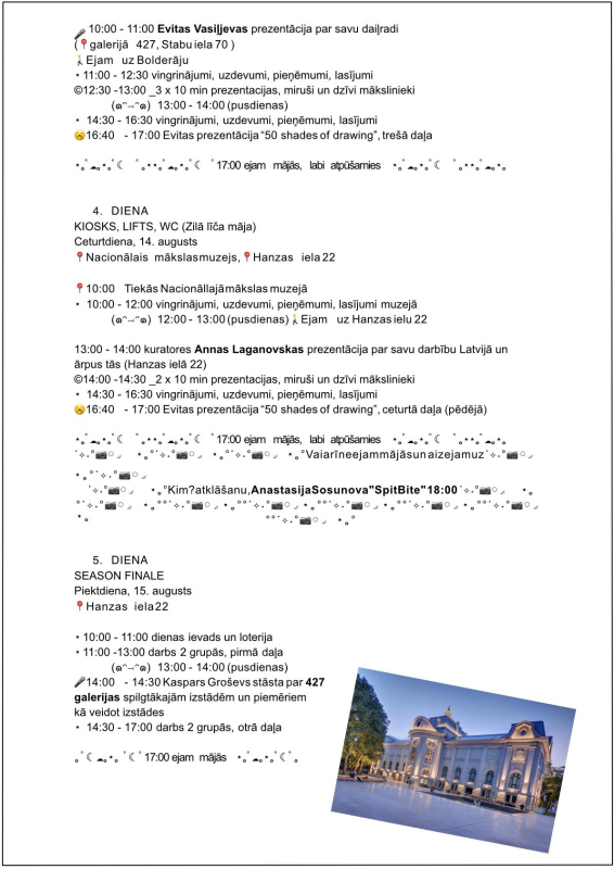 The first edition took place from August 11–16, 2025, at Hanzas iela 22, in collaboration with Kim? Contemporary Art Centre and the gallery 427, Riga.